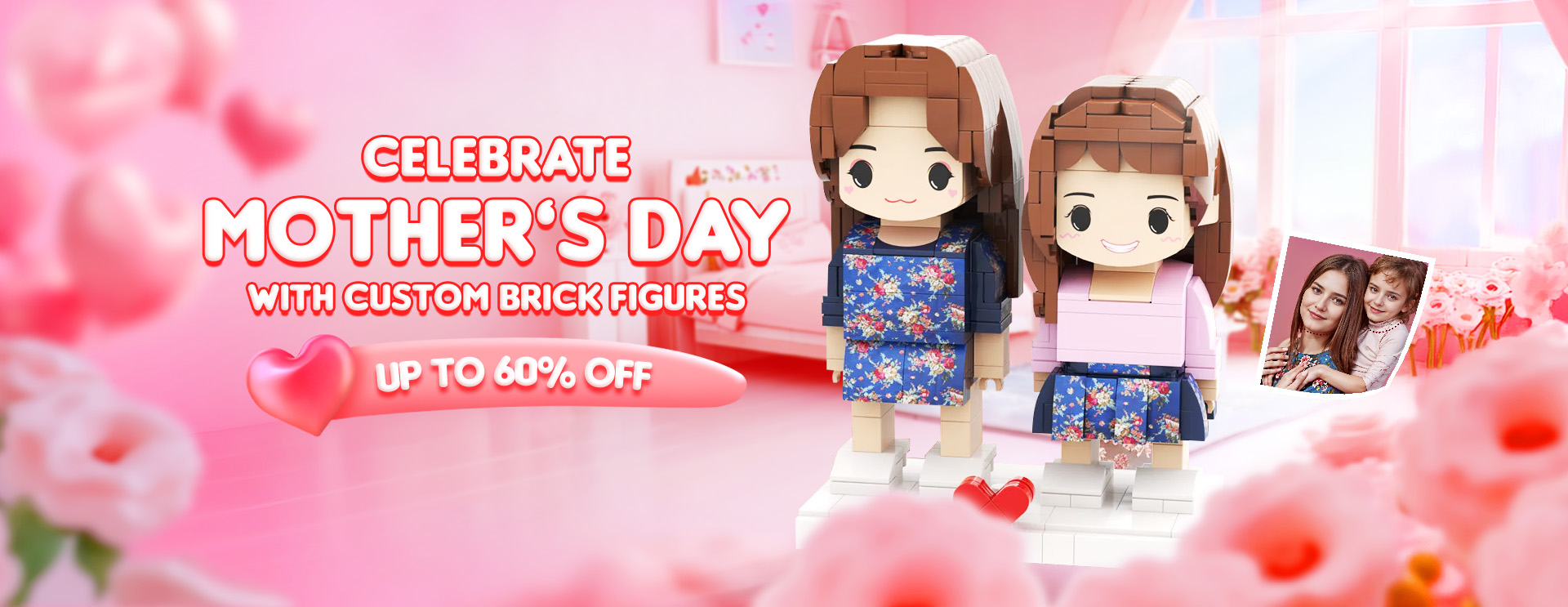 Gift for Mom Customizable Head 2 People Custom Brick Figures -