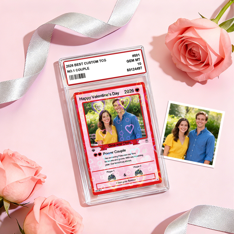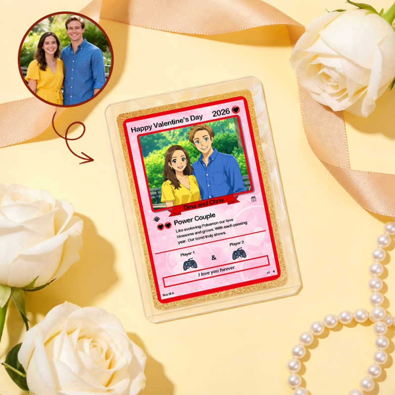 Personalized Valentine’s Day Power Couple Card, Custom Anniversary Card Couple Photo Anime Style, Best Valentine's Day Gift for Lover