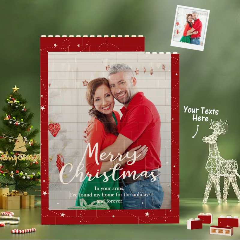 Custom Building Block Puzzle Personalized Vertical Building Photo Bricks Merry Christmas