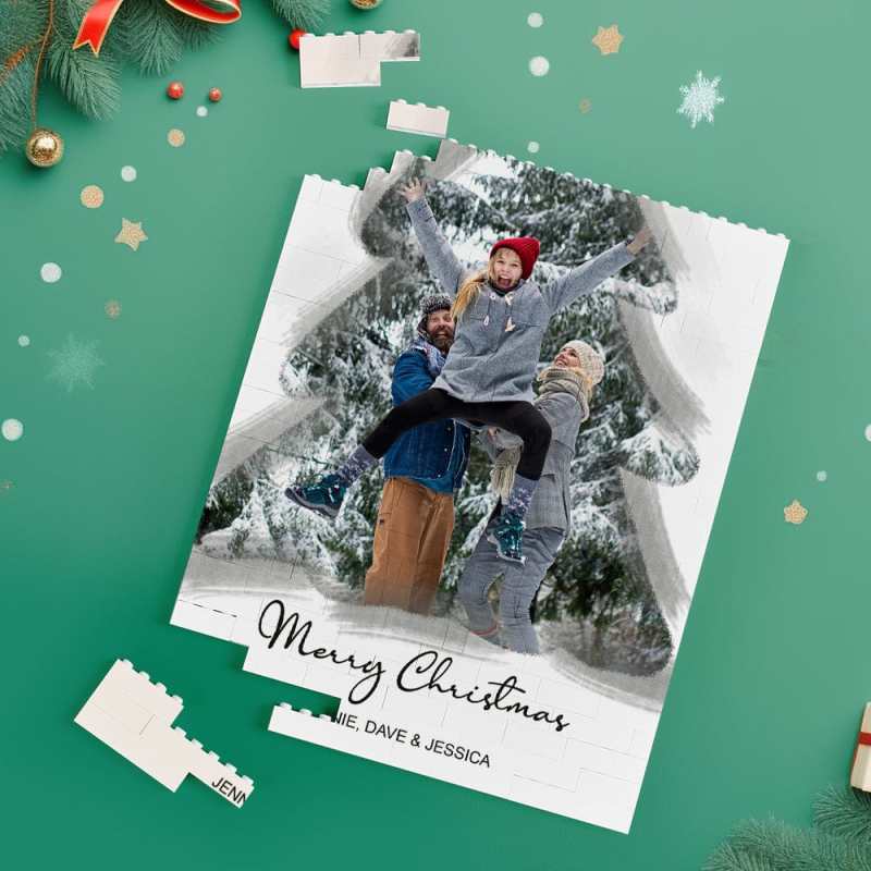 Custom Building Block Puzzle Vertical Building Photo Bricks Christmas Tree