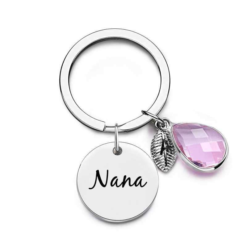 Custom Engraved Birthstone Keychain Leaf Delicate Gifts