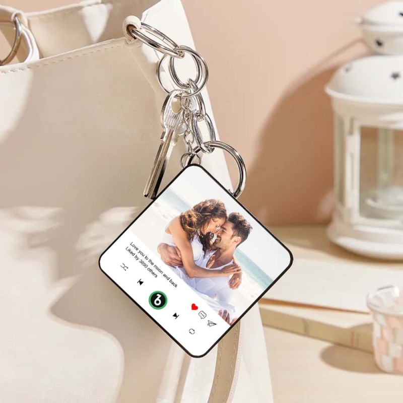 Celebrate memories with this Personalized Photo Music Keychain - a mini music box you can carry anywhere. Made of premium-quality acrylic, this durable and stylish accessory features crystal-clear sound and a push-button playback function, letting you enjoy music instantly without using a cell phone.