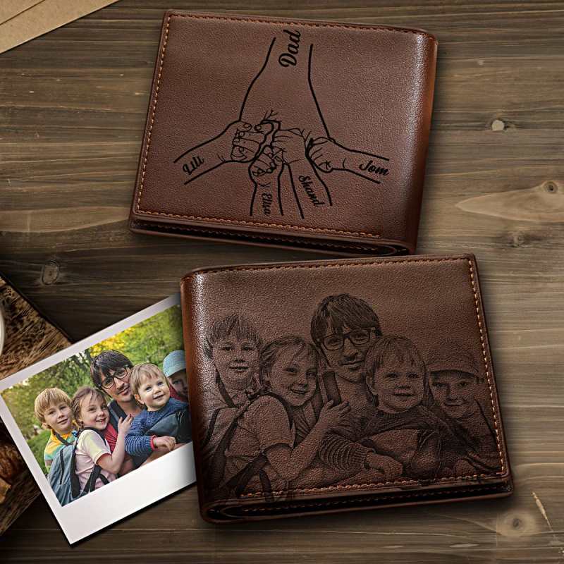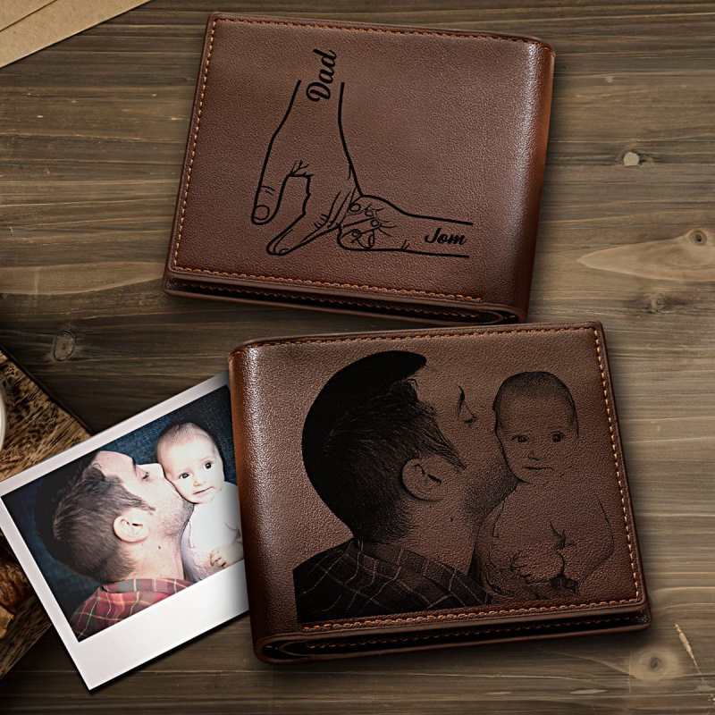 Custom Photo Engraved Leather Wallet Father's Day Gift for Dad