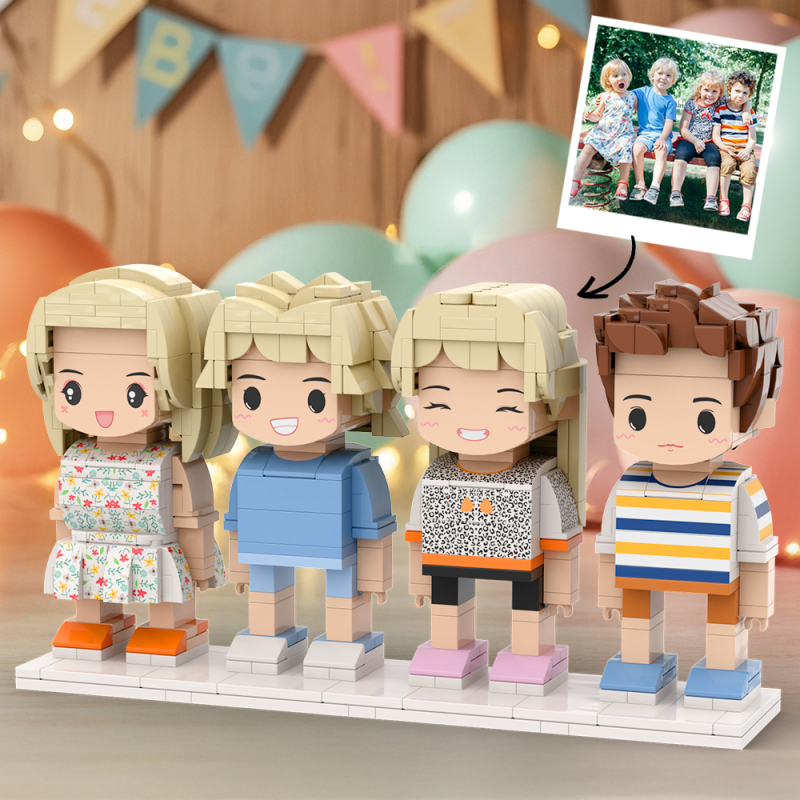 Customizable 4 People Cute Face Custom Brick Figures Full Body Happy Children's Day
