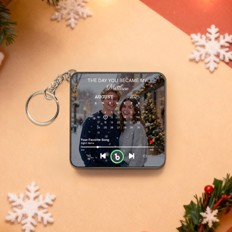 Personalized Mini Music Fridge Magnet Keychain With Calendar Photo "The Day You Became My" Refrigerator Magnet Keyring Can Play Songs Anniversary Gifts