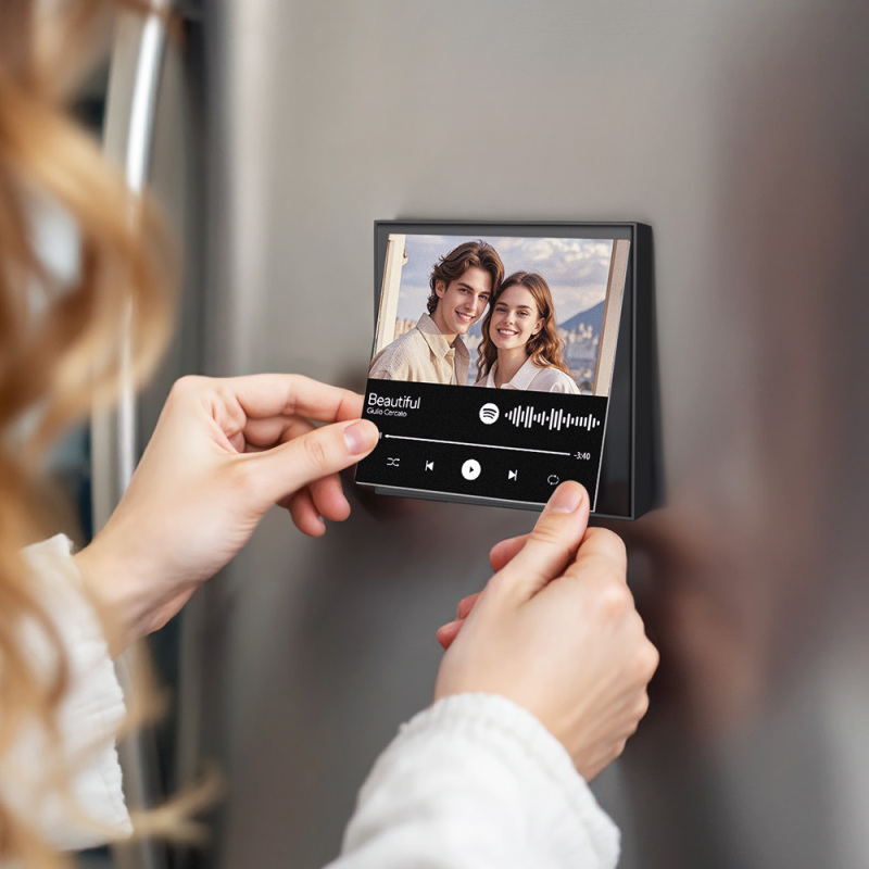 Customized Romantic Singing Refrigerator Magnet - The Best Gift Bring your favorite music to life with our Customized Album Fridge Magnet! This innovative magnet is more than just a decorative piece; it's a functional, interactive device that lets you play your favorite songs directly from your fridge. Whether you want to listen to a relaxing playlist while cooking or enjoy your favorite music while grabbing a snack, this fridge magnet makes it all possible.