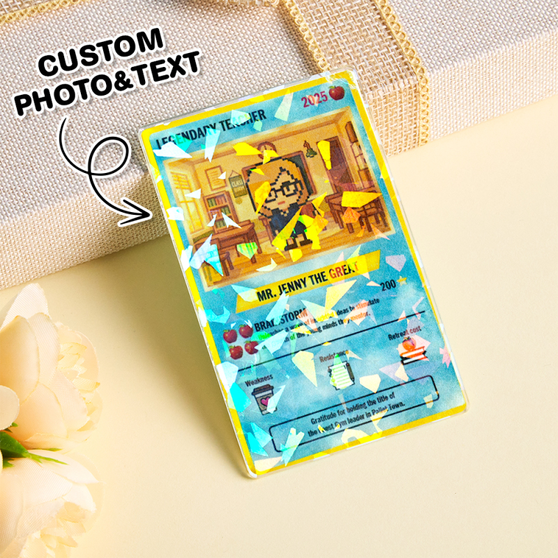 The perfect gift for loving! Designed like a custom trading card, this unique keepsake turns Teacher into his very own collectible character, name, and power stats for a truly unforgettable tribute.